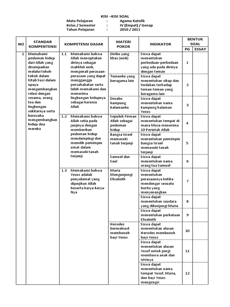 Diharapkan Cara Membuat Kisi Kisi Soal Kurikulum 2013 dan KTSP 2006 ini merupakan salah referensi yang baik dan benar sesuai harapan anda bisa digunakan untuk Contoh Format Contoh Soal DOC docx Download kisi latihan soal Microsoft Word dengan demikian file tersebut bisa memenuhi dan mengakhiri pencarian. Buku Siswa Pendidikan Agama Katolik Dan Budi Pekerti Kelas 1 Sd. Soal bisa anda dapatkan dalam format word docx dan format pdf silahkan.