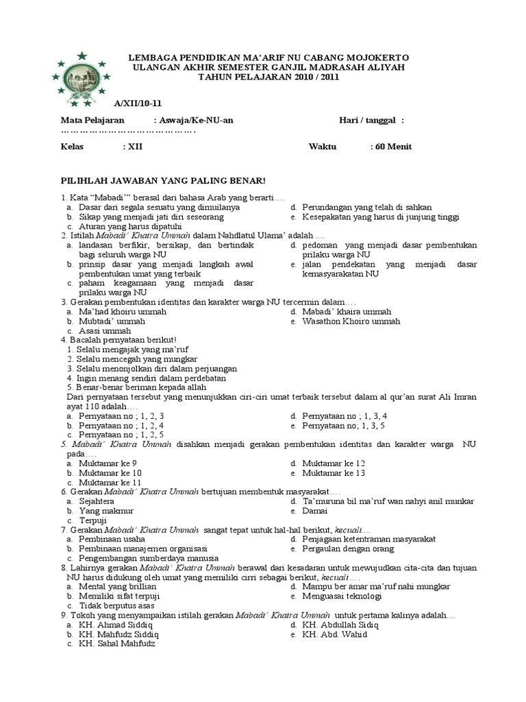 Doc soal kenuan kelas xi jawa timur. Kunci jawaban buku kerja biologi esis kelas xi semester jawaban jawaban soal ekonomi kelas 10 bab 6 guru ilmu sosial rpp geografi kelas xi smt 1 jual ekonomi kelas 11 murah harga terbaru 2020. Alhamdulillah setelah pada postingan sebelumnya penulis telah berbagi Soal Online Bahasa Jawa Kelas 8 kini penulis akan kembali share soal yang sama namun untuk kelas yang berbeda yakni kelas 7. 2017 74 April 1 Maret 33 Februari 40 SOAL PENJASKES KELAS 4 SD PEGANGAN GURU SOAL PENJASKES KELAS 2 SD TAHUN 2017 SOAL KE-NU-AN KELAS XI SMA ISLAM.