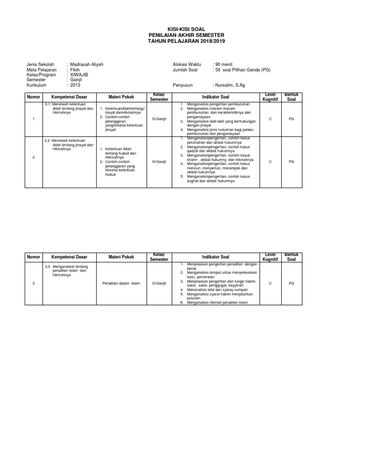 Contoh Soal UAS FIQIH Madrasah Aliyah Kelas X. Buku Fiqih Guru MA Kelas X. 2 Kajilah apakah semua indikator tersebut telah mempresentasikan KD nya apabila belum lakulanlah analisis lanjut untuk menemukan in dikator-indikator lain yang kemungkinan belum teridentifikasi.