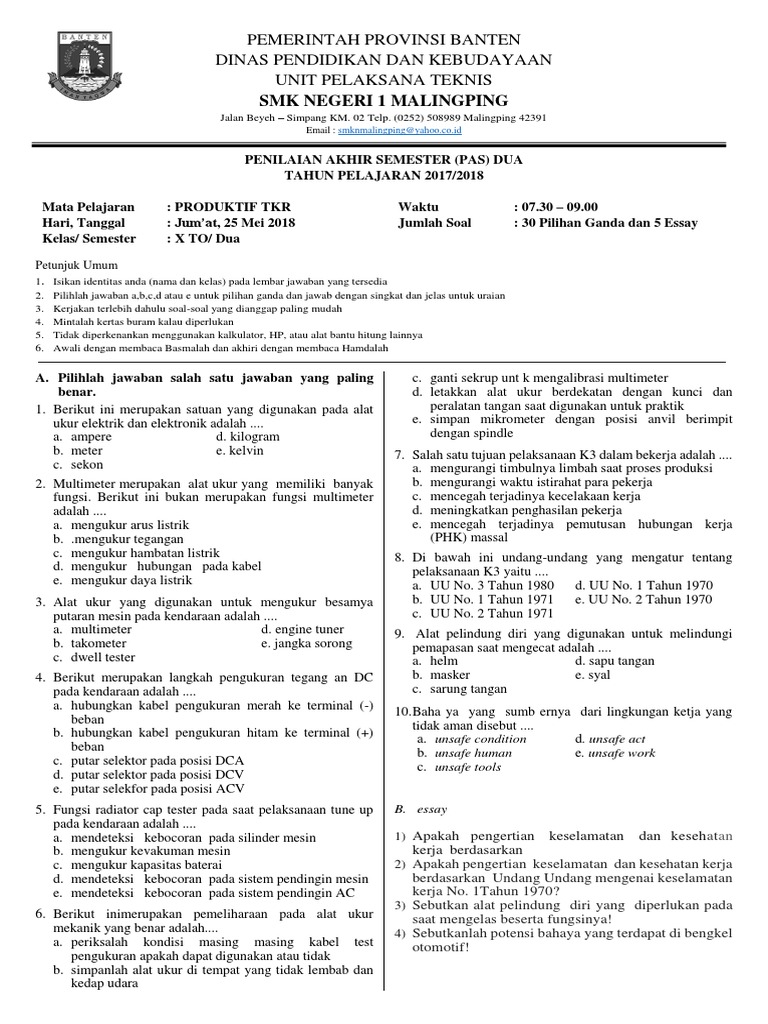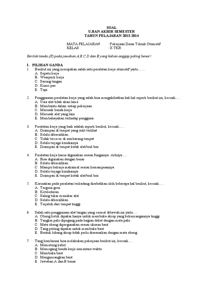 Soal Pilihan Ganda Pekerjaan Dasar Teknik Otomotif Info Seputar Kerjaan