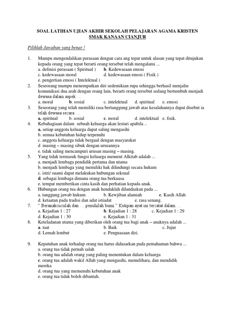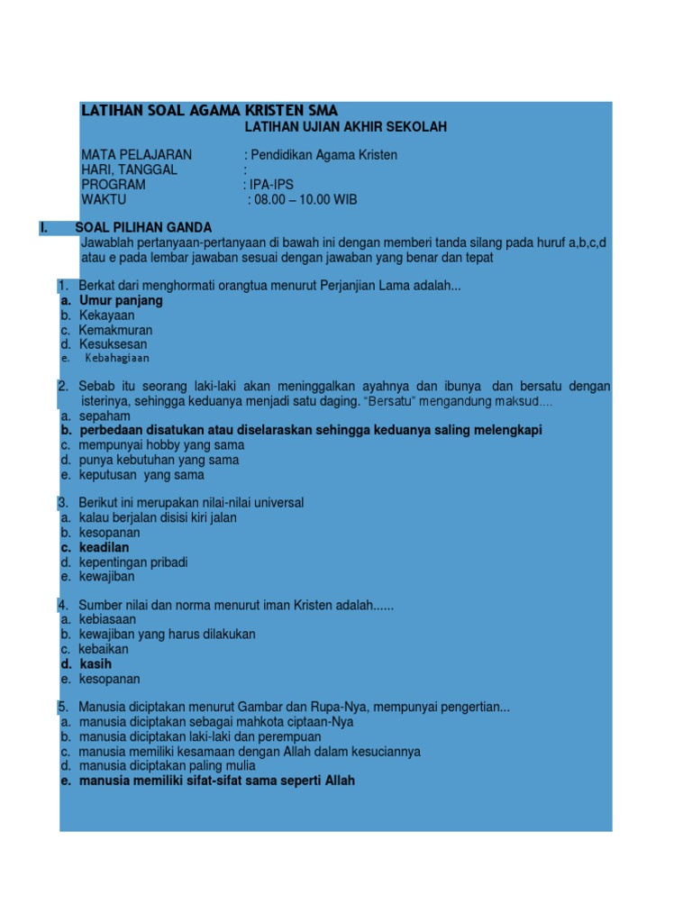 Latihan Soal Agama Kristen Sma Docx