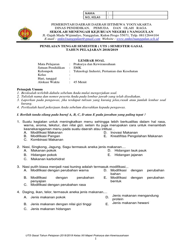 Adapun materi yang akan dipelajari sangatlah luas dan terdiri dari beberapa bab yang terbagi dalam dua semester yaitu semester 1 dan 2 dan. Prakarya membuat soal pilihan ganda 1. Latihan Soal USBN Pengolahan Makanan Internasional Unknown 2202018.