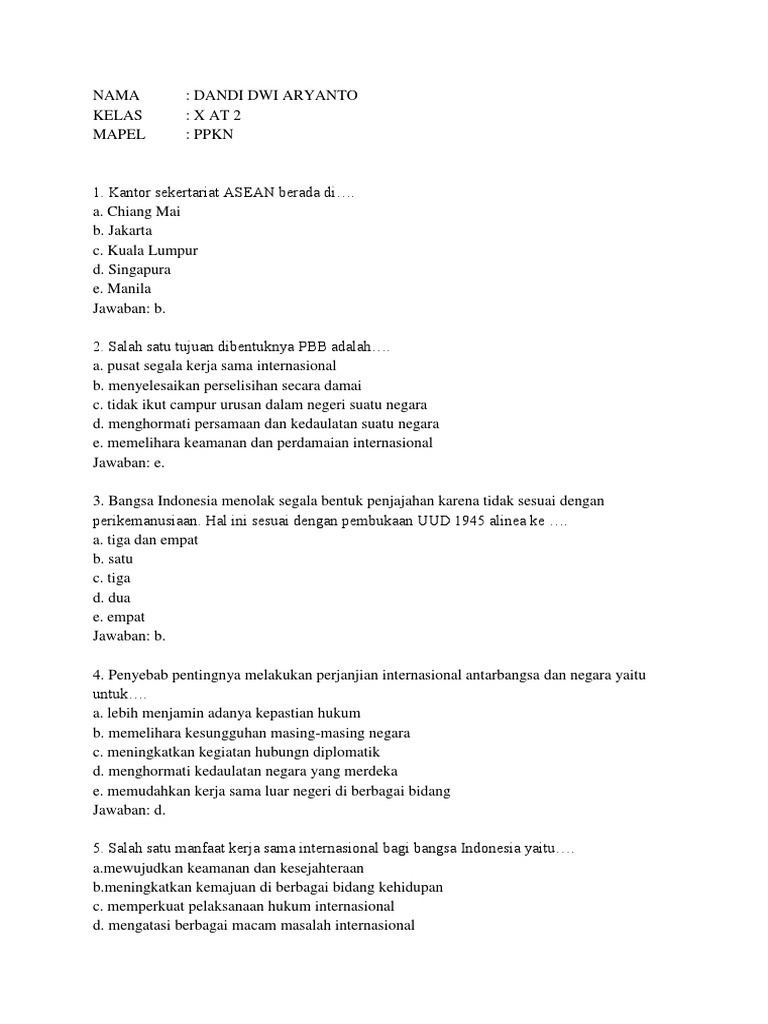 Jenis soal mata pelajaran ppkn yang kami berikan pada bab ancaman ancaman terhadap negara indonesia adalah soal pilihan ganda dan soal uraian atau esai. LATIHAN SOAL DAN JAWABAN UJIAN SEMESTER GENAP PPKN KELAS X SMA Jawaban yang bercetak merah 1. Berbagai upaya dilalukan oleh pemerintah setiap negara untuk memutus.