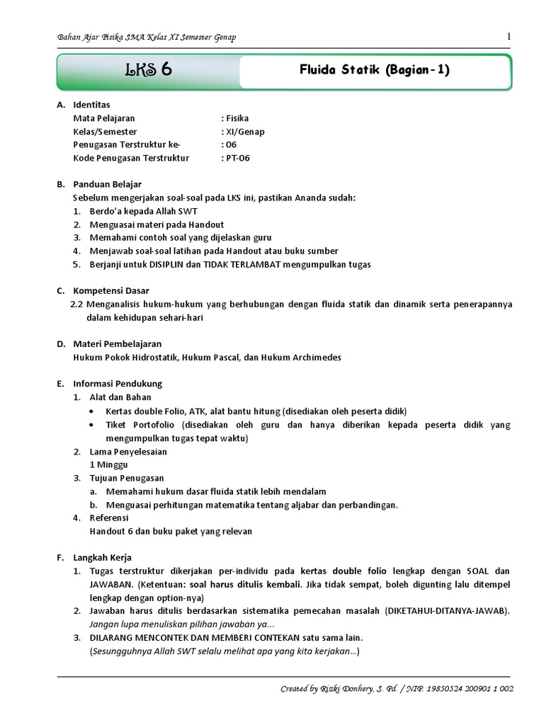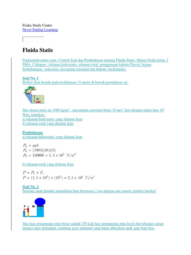 Soal Dan Pembahasan Fisika Kelas Xi Hukum Kekekalan Hidrostatis