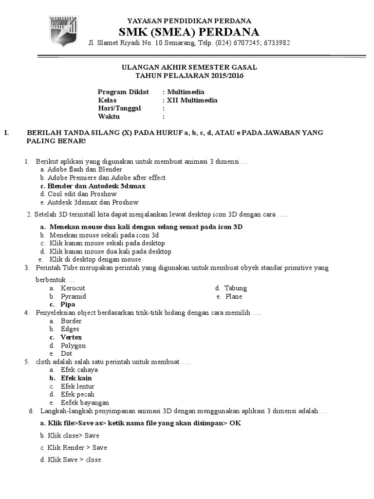 Soal Dan Jawaban Uas Smk Multimedia Kls Xii