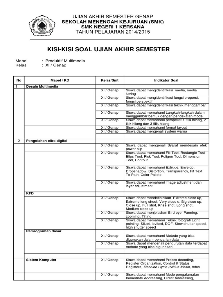 Kisi Kisi Soal Uas Genap Xi Mm Produktif Gabungan 2014 2015 Untuk Siswa Pdf